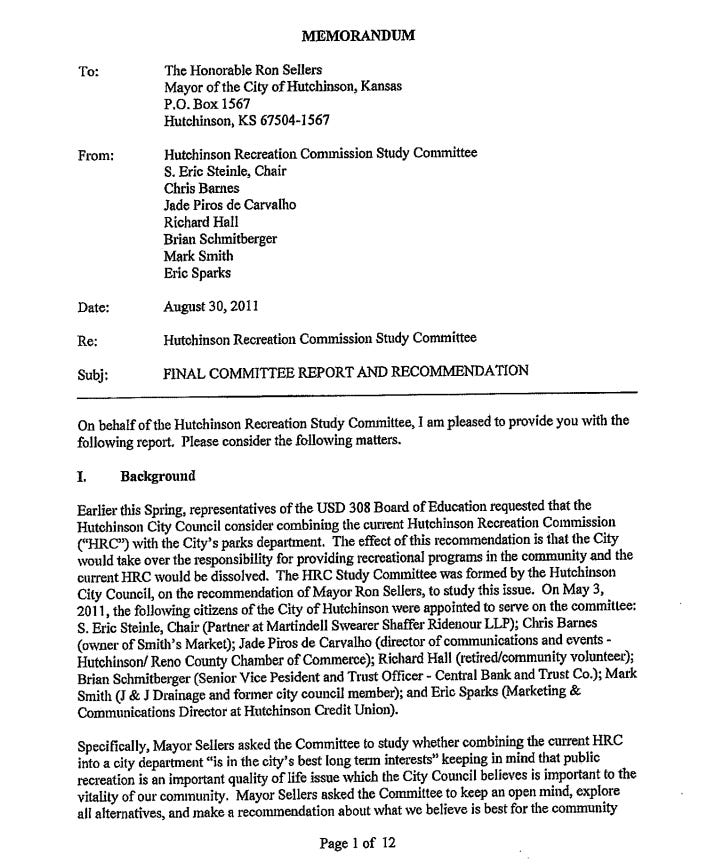 Regarding conversation around the future of the Hutchinson Recreation Commission